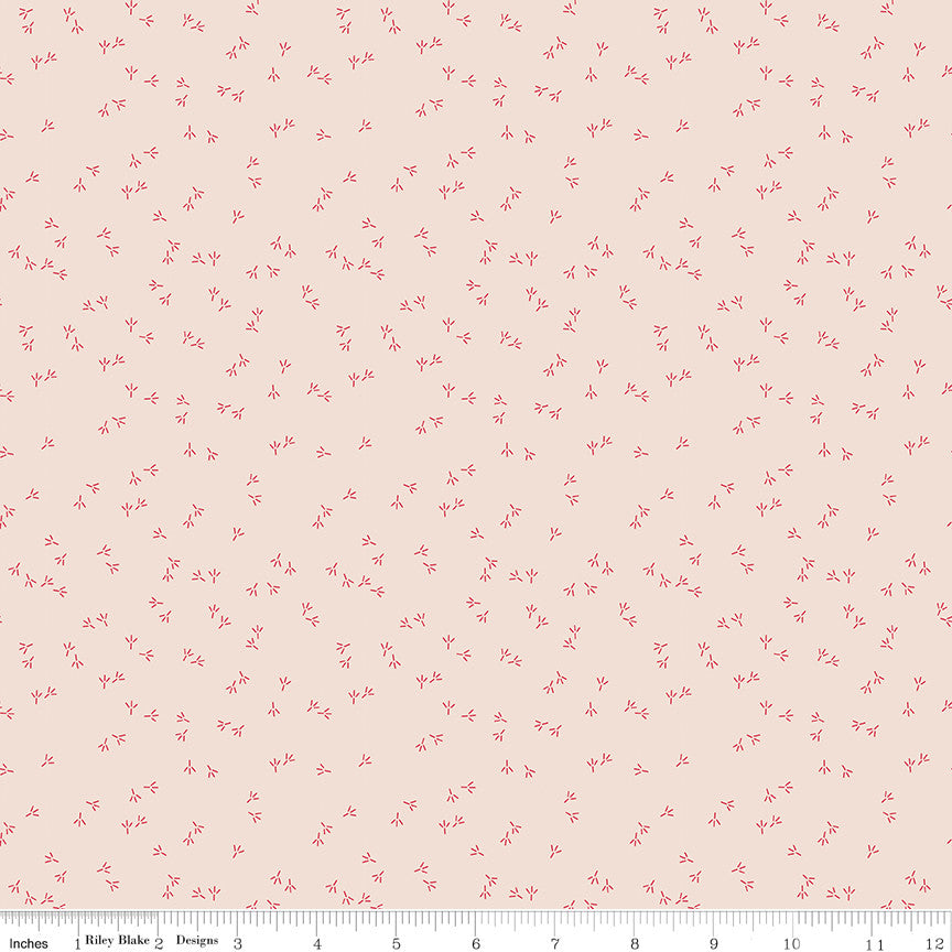 PRESALE Farmers Daughter Chicken Tracks Background Tea Rose Yardage by Lori Holt of Bee in My Bonnet | C17189-TEAROSE