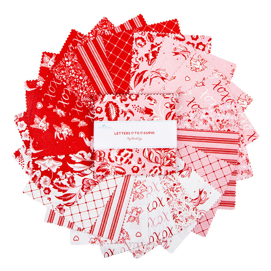 This 5" Stacker precut bundle includes 42 pieces from the Letters to Cupid collection by My Mind's Eye for Riley Blake Designs. Each print will be included 2 times in the bundle.